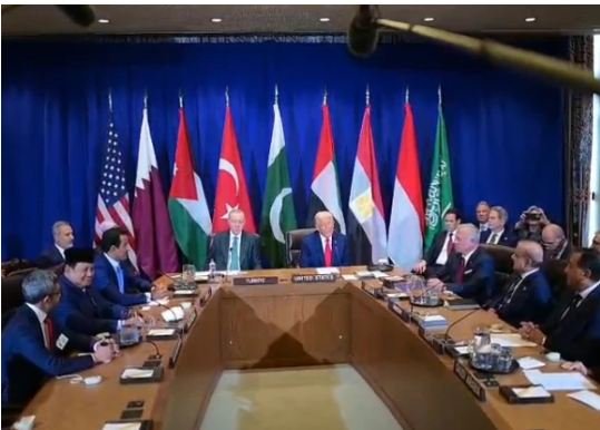 وزیرِاعظم پاکستان شہباز شریف، سعودی ولی عہد محمد بن سلمان، قطر کے امیر شیخ تمیم بن حمد، ترکیہ کے صدر رجب طیب ایردوان، انڈونیشیا کے صدر پرابوو سبینتو، مصر کے صدر عبدالفتاح السیسی اور متحدہ عرب امارات کے سربراہ نے امریکی صدر کے ساتھ طویل گفتگو کی۔یہ ملاقات محض ایک رسمی اجلاس نہیں تھی بلکہ غزہ کی بگڑتی ہوئی صورتحال اور خطے کے مستقبل کے بارے میں ایک فیصلہ کن لمحہ سمجھی جا رہی ہے۔