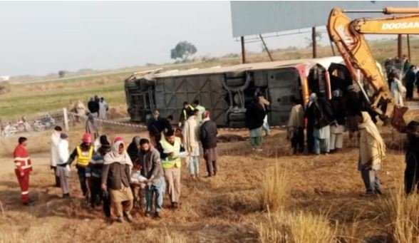 حکام کا کہنا ہے کہ ٹائر پھٹنے کے باعث ڈرائیور بس پر قابو نہ رکھ سکا اور حادثہ پیش آیا۔ حادثے میں زخمیوں کو ہسپتال منتقل کر دیا گیا ہے۔