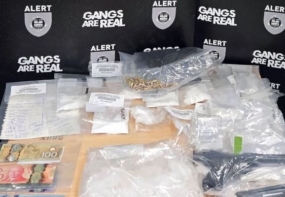ALERT کی منظم جرائم کی ٹیم نے کیلگری پولیس سروس اور Cochrane RCMP کے تعاون سے 8 فروری کو کیلگری کے Acadia اور Montgomery کے پڑوس میں گھروں اور Cochrane میں Heritage Boulevard پر ایک گھر کی تلاشی لی۔