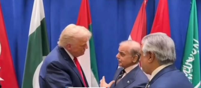 اردوورلڈ کینیڈا( ویب نیوز)امریکی صدر ڈونلڈ ٹرمپ نے اسلامی ممالک کے سربراہان کے ساتھ اجلاس کے اختتام پر وزیراعظم شہباز شریف اور نائب وزیرِاعظم اسحاق ڈار سے ملاقات کی۔ اس موقع پر صدر ٹرمپ اور وزیراعظم نے گرمجوشی سے مصافحہ کیا اور خوشگوار ماحول میں غیر رسمی گفتگو بھی ہوئی۔