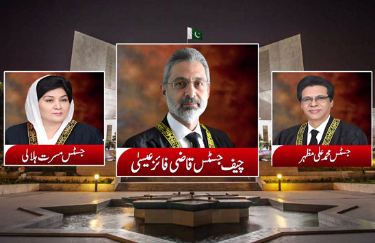 چیف جسٹس قاضی فائز عیسیٰ کی سربراہی میں تین رکنی بنچ سماعت کر رہا ہے، جسٹس محمد علی مظہر اور جسٹس مسرت ہلالی بنچ کا حصہ ہیں.